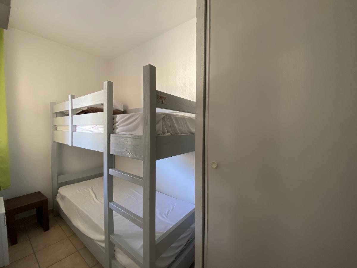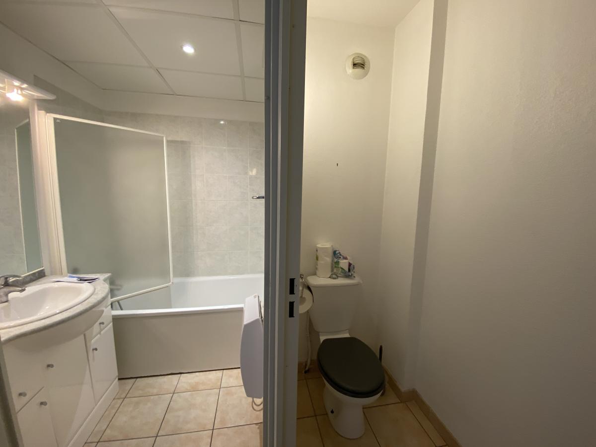 Appartement au premier étage d'environ 37,5 m² (surface Carrez) + Terrasse de 10,30 m² comprenant : séjour, kitchenette, salle de bains, WC, une chambre avec placard, un coin nuit dit chambre "Cabine" et salle d'eau (douche) attenante.