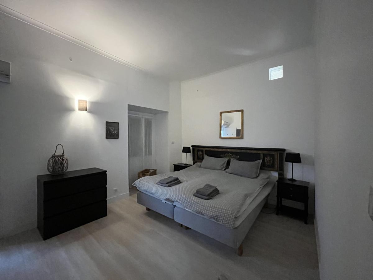 La chambre, dotée d’un lavabo et de WC privatifs, offre un espace nuit à la fois intime et fonctionnel avec accès sur le patio.