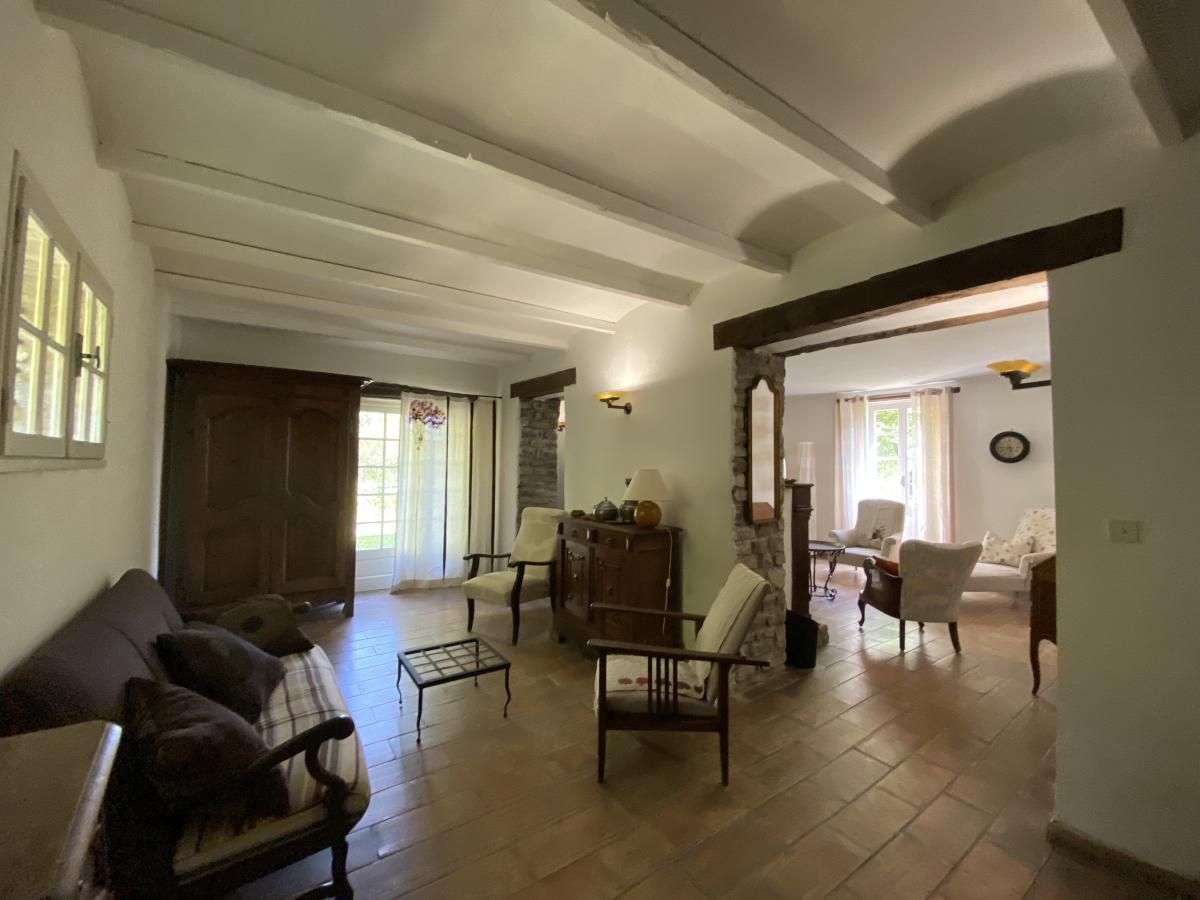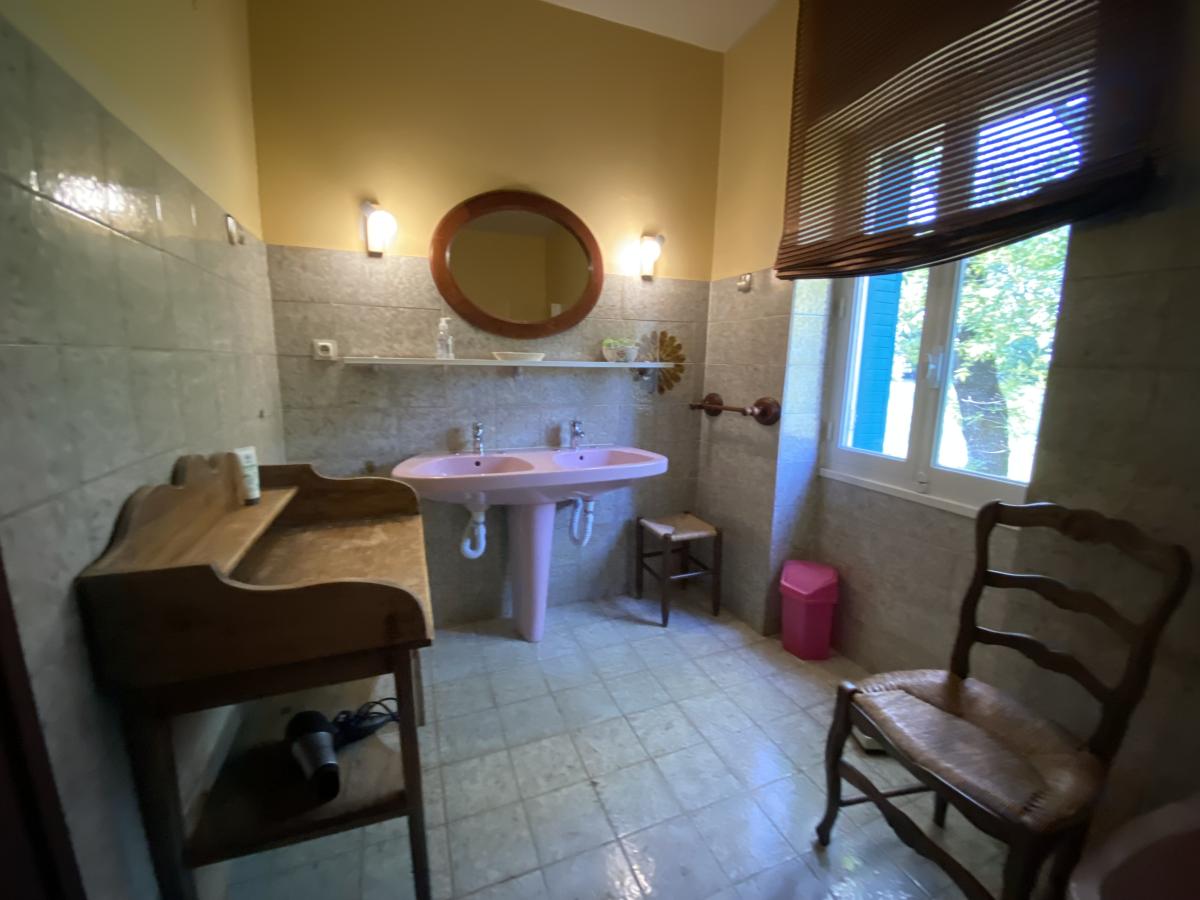 - Au rez-de-chaussée : entrée sur escalier central, cuisine, séjour, salon, boudoir, salle de bains et sanitaire