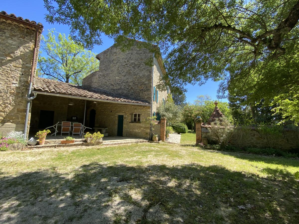 Une maison de campagne à usage d'habitation en pierres apparentes d'environ 255 m² habitables élevée de deux étages sur rez-de-chaussée comprenant :